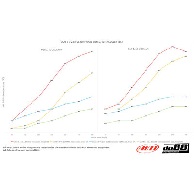 This diagram shows the charge air temperature post do88 performance intercooler compared to OEM intercooler*: