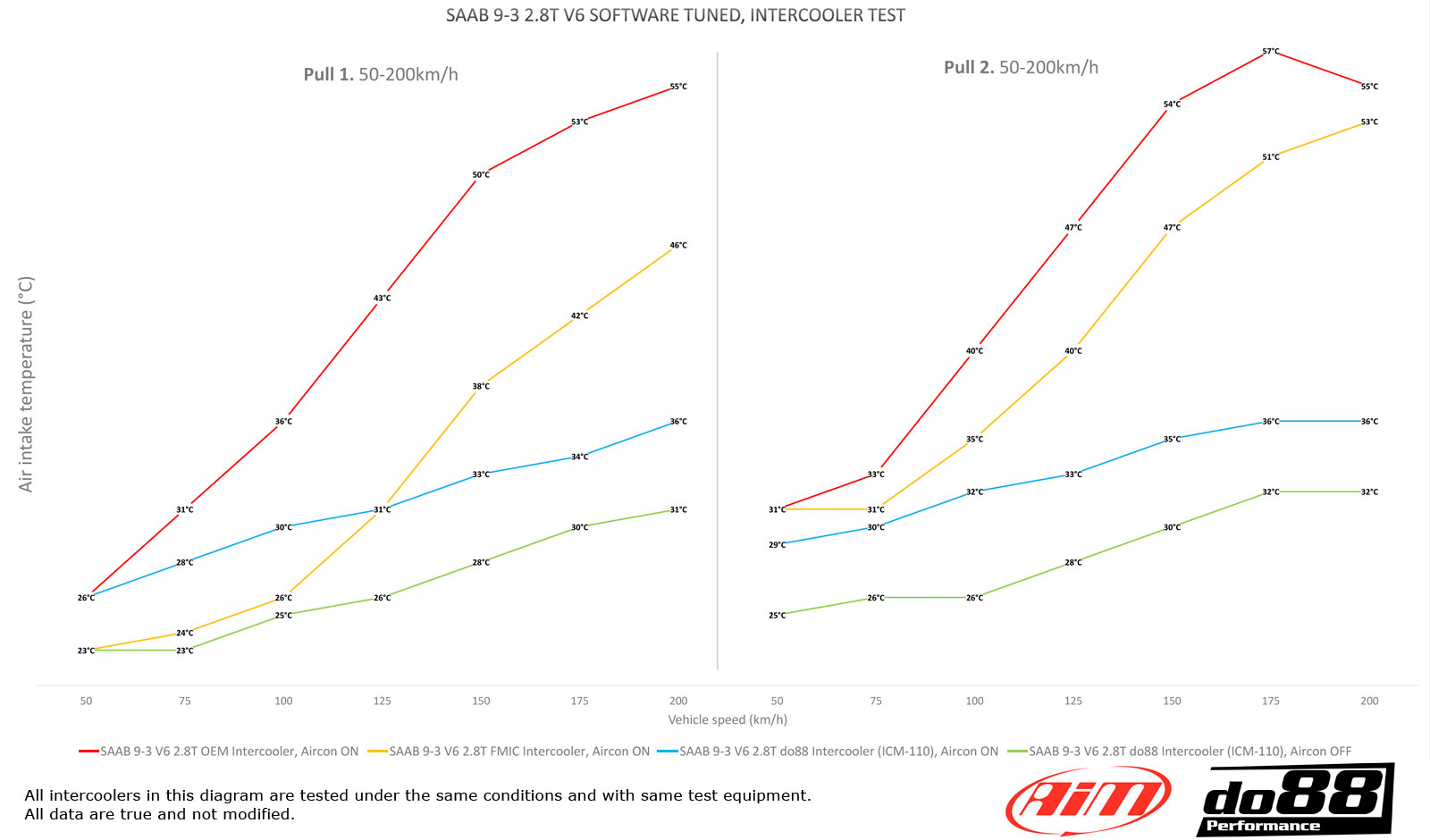 - Post intercooler air temperature at same conditions: 36°C (57°C), do88 21°C lower!