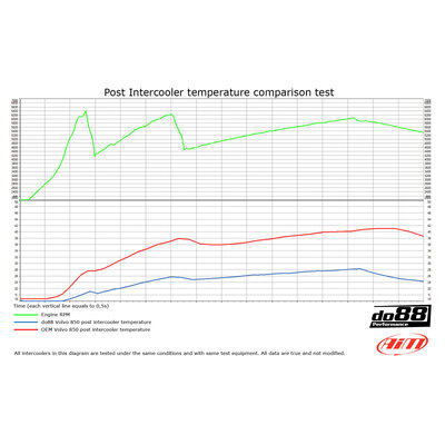 This diagram shows the charge air temperature post do88 performance intercooler compared to OEM intercooler*: