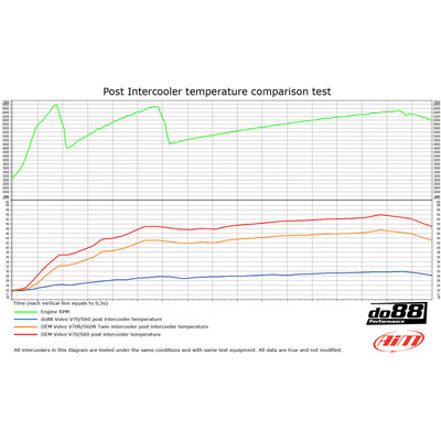 This diagram shows the charge air temperature post do88 performance intercooler compared to OEM intercooler*: