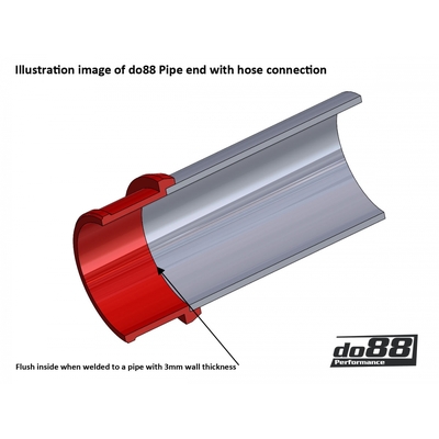 CNC-machined pipe end designed to be welded to an aluminum pipe with 3mm wall thickness. The pipe end gives a safe hose connection without disturbing the flow since the inside is flush with the aluminum pipe inner diameter.