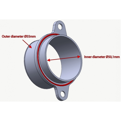 CNC-machined aluminum adapter for upgrade compressor housing. This adapter is designed to fit OE compressor housing that has been machined to 50,1mm inlet. This adapter has 55mm hose connection.