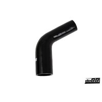 Black 60 degree reducing elbow silicone hose. This type of hose have different inner diameter in both hose ends. The hose is suitable for pressure or suction applications, for example between turbocharger and intercooler or between turbocharger and air filter. Also suitable for coolingsystems.