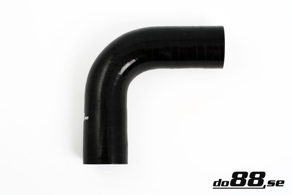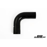 Black silicone hose 90 degree elbow suitable for pressure or suction applications, for example between turbocharger and intercooler or between turbocharger and air filter. Also suitable for coolingsystems.