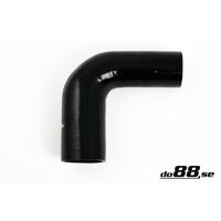 Black 90 degree reducing elbow silicone hose. This type of hose have different inner diameter in both hose ends. The hose is suitable for pressure or suction applications, for example between turbocharger and intercooler or between turbocharger and air filter. Also suitable for coolingsystems.