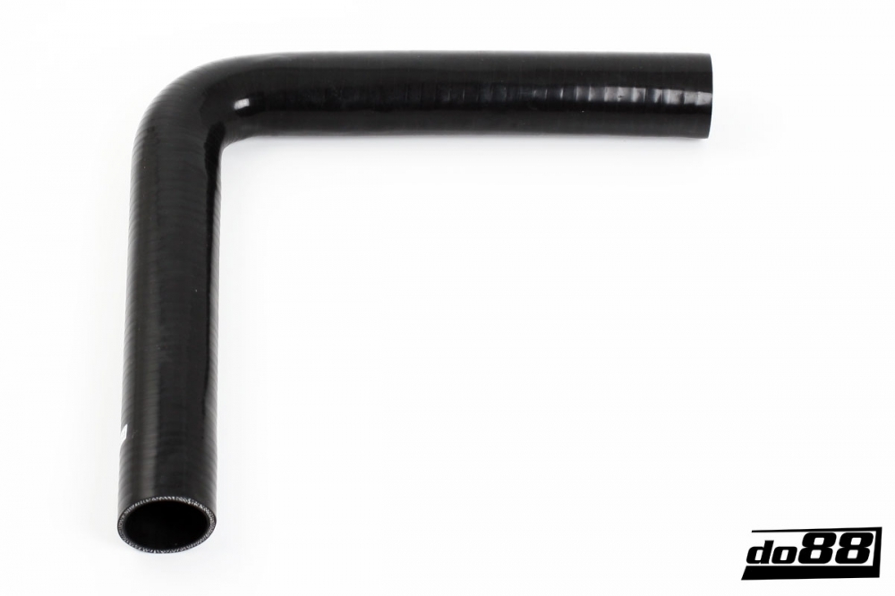 Silicone hose, black, 90 degrees with 300 mm leg.