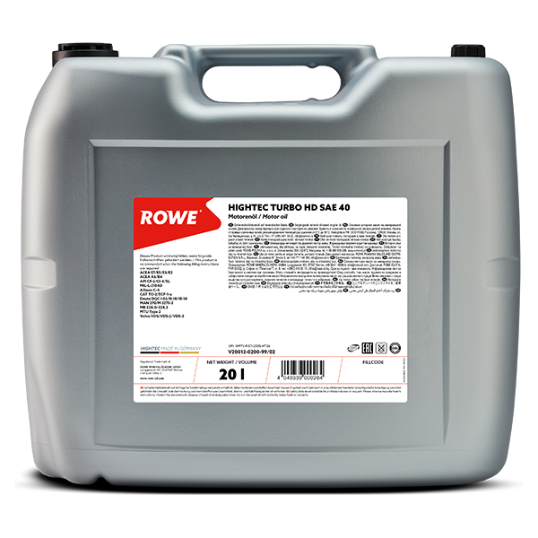 HIGHTEC TURBO HD SAE 40 is a premium, monograde engine oil of SAE grade 40. Its exceptionally wide range of applications is reflected in the interaction of selected base oils with advanced additives. It can be used in Otto and diesel engines, with or without turbocharging. Application HIGHTEC TURBO HD SAE 40 is used in petrol and diesel engines in mixed vehicle fleets according to the manufacturer’s specification. Its modern design makes a wide range of applications possible and ensures safe operation under all operating conditions. ROWE recommendations ACEA E7/E5/E3/E2 ACEA A3/B4 API CF-2/CI-4/SL MIL-L-2104D Allison C-4 CAT TO-2/ECF-1-a DTFR 15B100 (ex. MB 228.2) Deutz DQC I-02/II-18/III-18 MAN 270/M 3275-2 MB 228.0 MTU Type 2 Volvo VDS/VDS-2/VDS-3